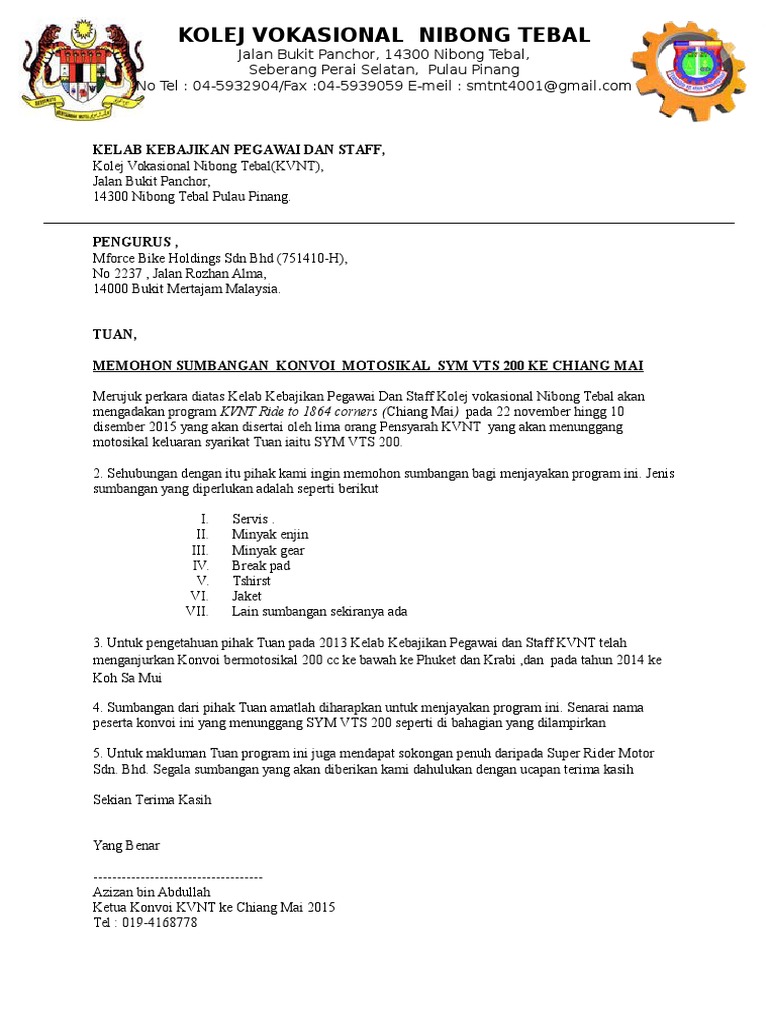 Surat permohonan sumbangan yb fasrcon. Permohonan sumbangan dana bagi menjayakan projek pembinaan laman sesawang bagi taman desa sentosa teras jernang selangor. These are so many great picture list that could become your creativity and informational reason for contoh surat memohon sumbangan yb design ideas for your own collections. Y.b tan sri/y.b dato/y.b datin. We hope you are all enjoy and finally can find the best picture from our collection that uploaded here and also use for suitable needs for personal use.