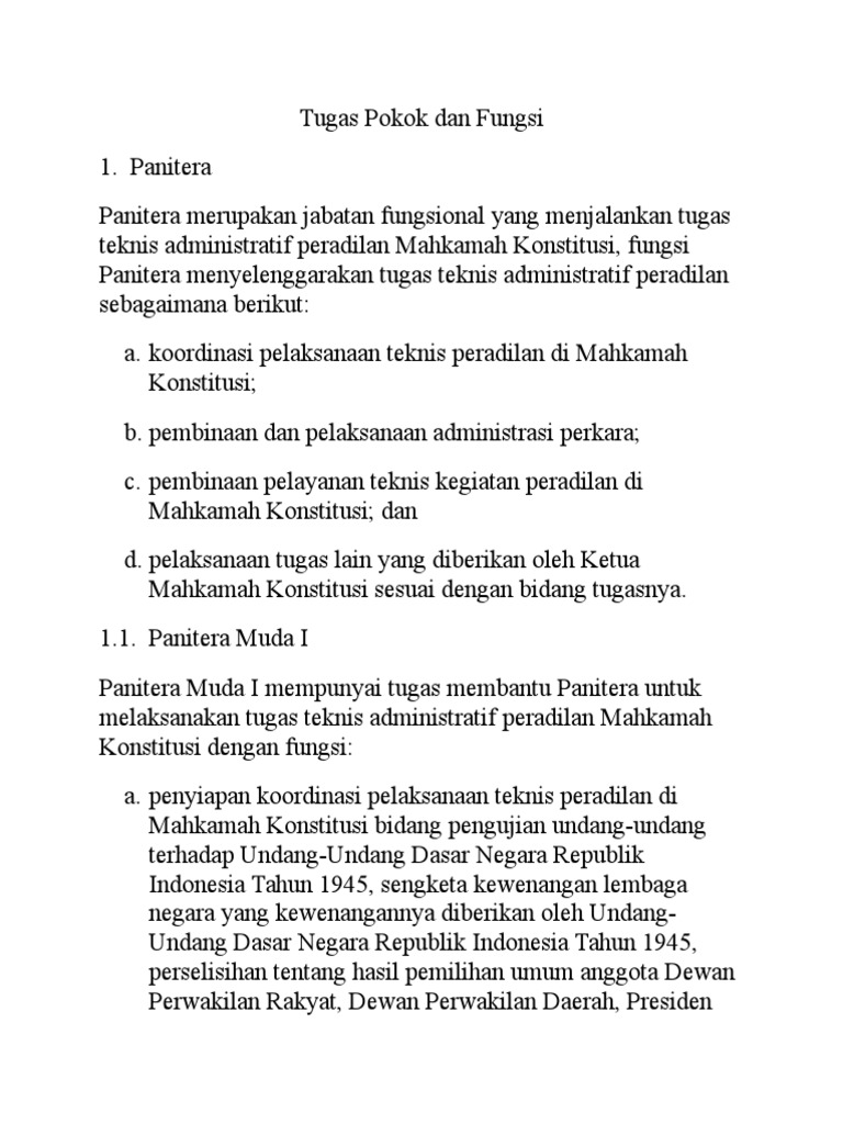 Salinan Perwal Nomor 041 Tahun 2012 Tentang Uraian Tugas Pokok Fungsi Dan Tata Kerja Staf Ahli from data03.123doks.com Direksi secara umum, direksi terdiri dari satu orang. Dewan direksi memiliki tugas peran untuk memimpin dan menentukan arah perusahaan. Membuat uud yang baru untuk menggantikan pemilu pertama di indonesia diadakan pada 29 september 1955 untuk memilih anggota dpr dan 15 desember 1955 untuk memilih dewan. Tugas serta wewenang dewan perwakilan daerah (dpd) ialah merupakan dua hal yang tidak dapat terpisahkan. Tugas utama ialah menggubal dan meluluskan undangundang. Fungsi utama dpr dalam pemerintahan indonesia adalah sebagai badan yang mewakili suara rakyat. Ia merupakan satu majlis khas untuk rakyat menyuarakan hasrat dan pendapat. Membahas dan memberikan atau tidak memberikan persetujuan terhadap peraturan pernerintah wajib memberi keputusan atas pendapat dewan perwakilan rakyat mengenai digaan pelanggaran oleh presiden dan wakil presiden menurut.